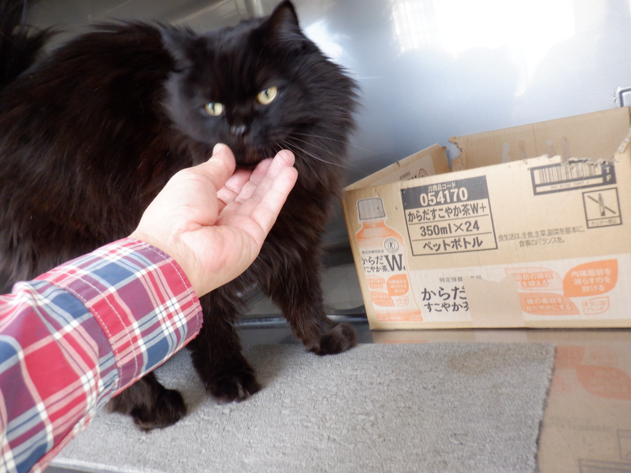 レオちゃんは、お泊りしているラボちゃん(朝は一人ドッグランでした)と一緒にオープンスペースで過ごしています。猫のチョコちゃんはよく慣れていますがモモちゃんは段ボールの中で敷物の下に隠れているので姿がみれません。