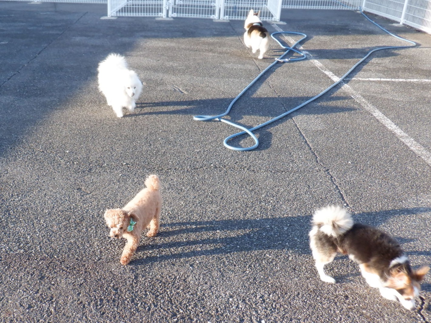 今朝は、犬のチロルちゃん・ハナちゃんが来て、お泊りしたワンちゃんたち(りあんちゃん・とぅぶちゃん・ライムちゃん・ルカちゃん・くぅちゃん)に合流しました。猫のカイちゃんがやってきました。