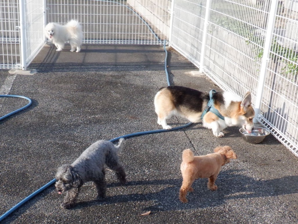 ワンちゃんでは、今朝もふちゃんとももちゃんがやってきました、もふちゃんは、ライムちゃん・ハナちゃん・りあんちゃん・くぅちゃん・コロンちゃんとのドッグランから、ももちゃんはオープンスペースから参加です。
