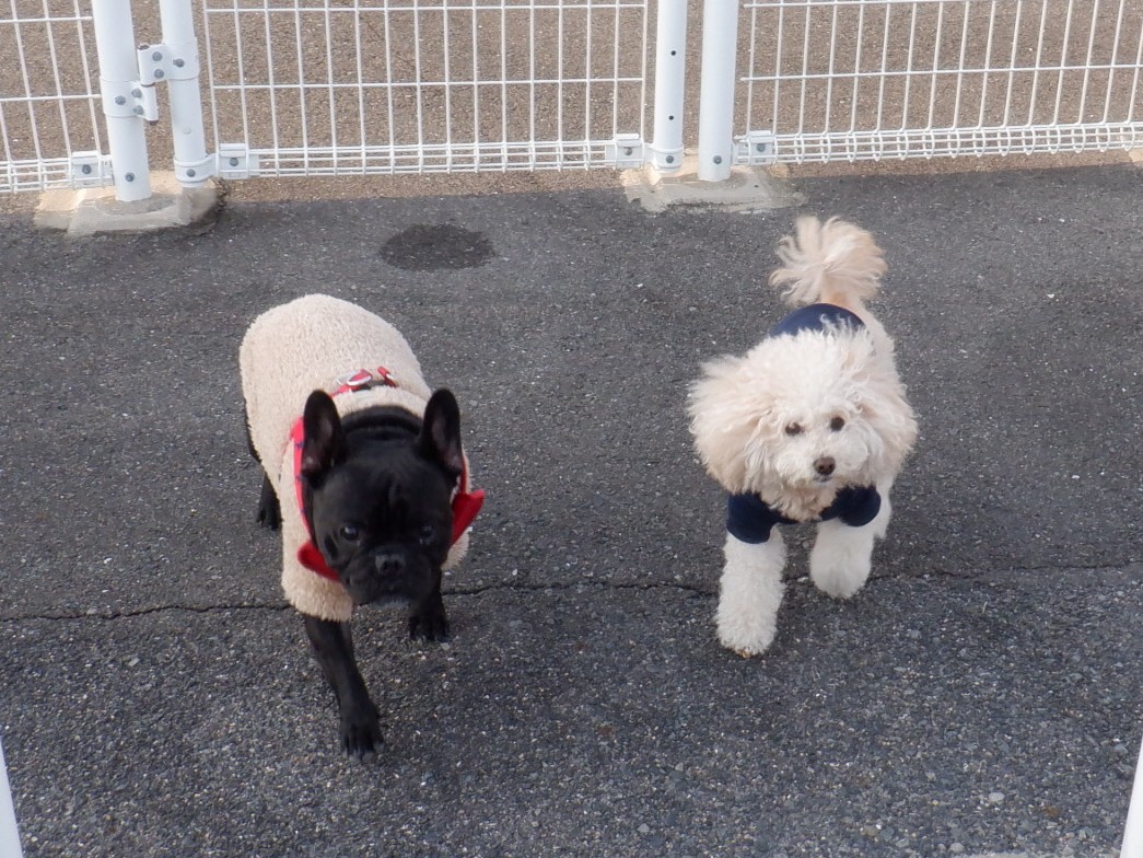 今朝は若干寒かったですが、お泊りしたワンちゃんたち(ララちゃん・コテツちゃん・ももちゃん)は、ドッグランに行きました。