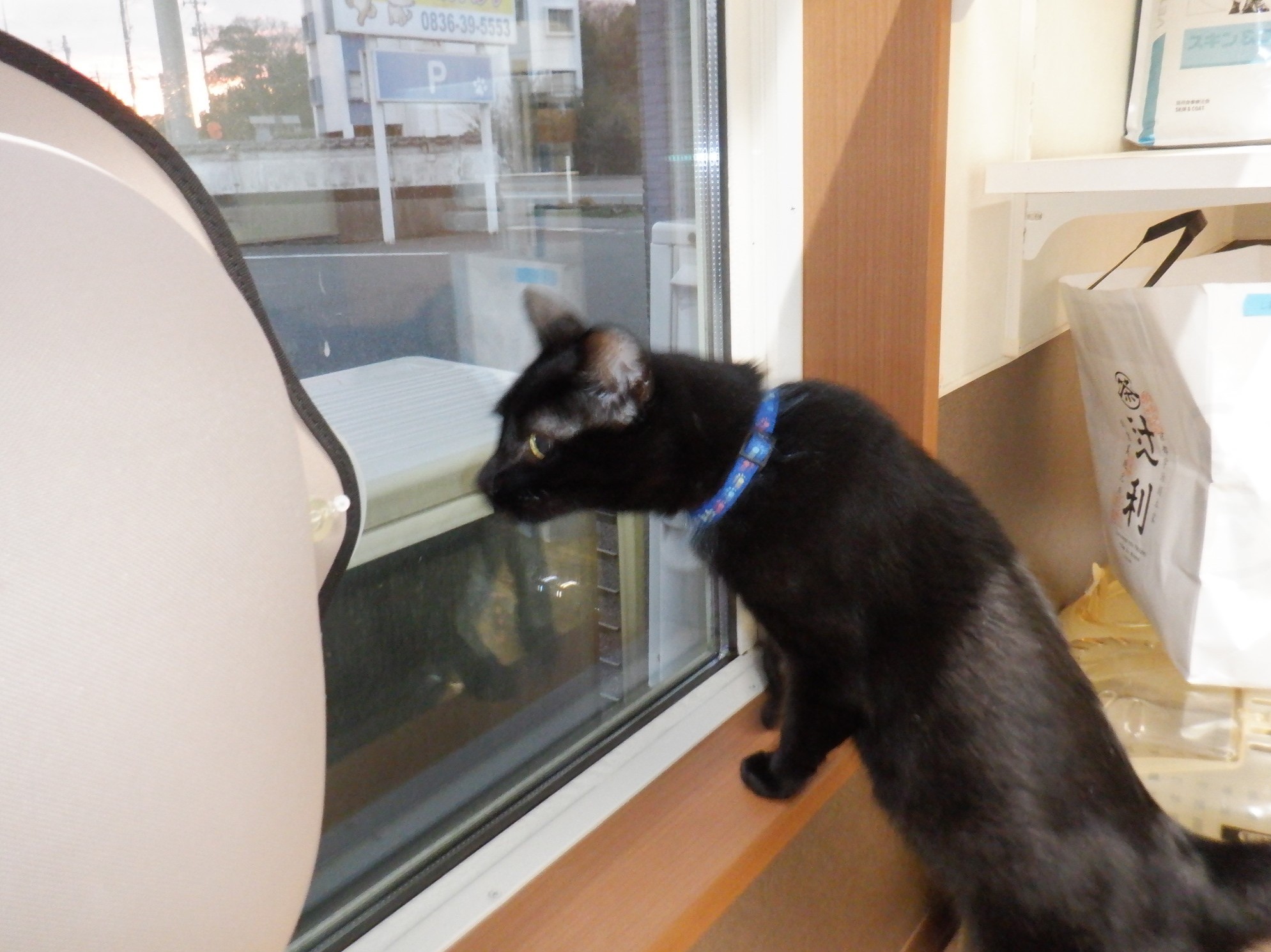 しずくちゃんは、窓の外の風景に興味津々