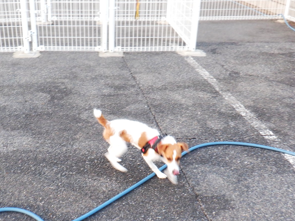 お泊りしたこむぎちゃんは朝のドッグランで疾走していました。猫のめるちゃんはヒトがいなければ段ボールから出ています。また今日はフェンリィちゃんの日中預かりです。