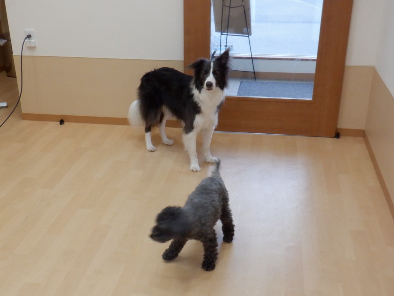 昨日チェックインしたロッシーちゃんとキナリちゃん、ロッシーちゃんはハナちゃん・ベリーちゃんと一緒に過ごしています(相性が良いようです)マロンちゃんもこの中に合流しました。キナリちゃんと今朝チェックインしたサンタちゃんは、犬室のケージ内で休んでいます。猫のカイちゃん、今朝は自主的にケージ外に出ていきました。