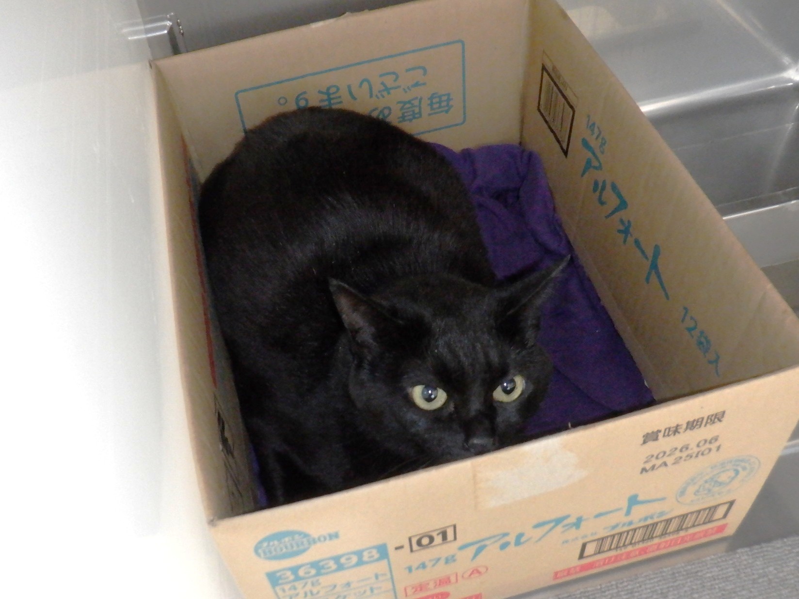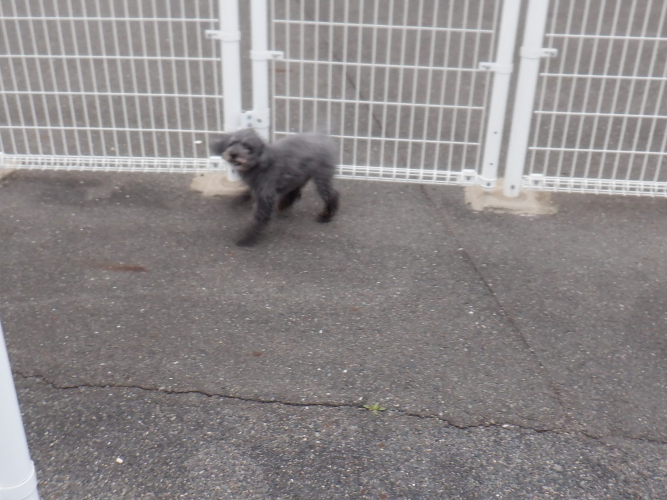 お泊りしたココアちゃん、朝一の散歩に行きましたが、シッポは下がったままです。ハナちゃんとタマキちゃんのドッグランは、(今朝は寒かったので)短かめでした。また、今朝、チョコちゃんがオープンスペースに合流しました。猫のカイちゃんはワンちゃんたちが外にいる間、キャッウォークを楽しみました。昨日チェックインしたランちゃんは、段ボールに籠っています。