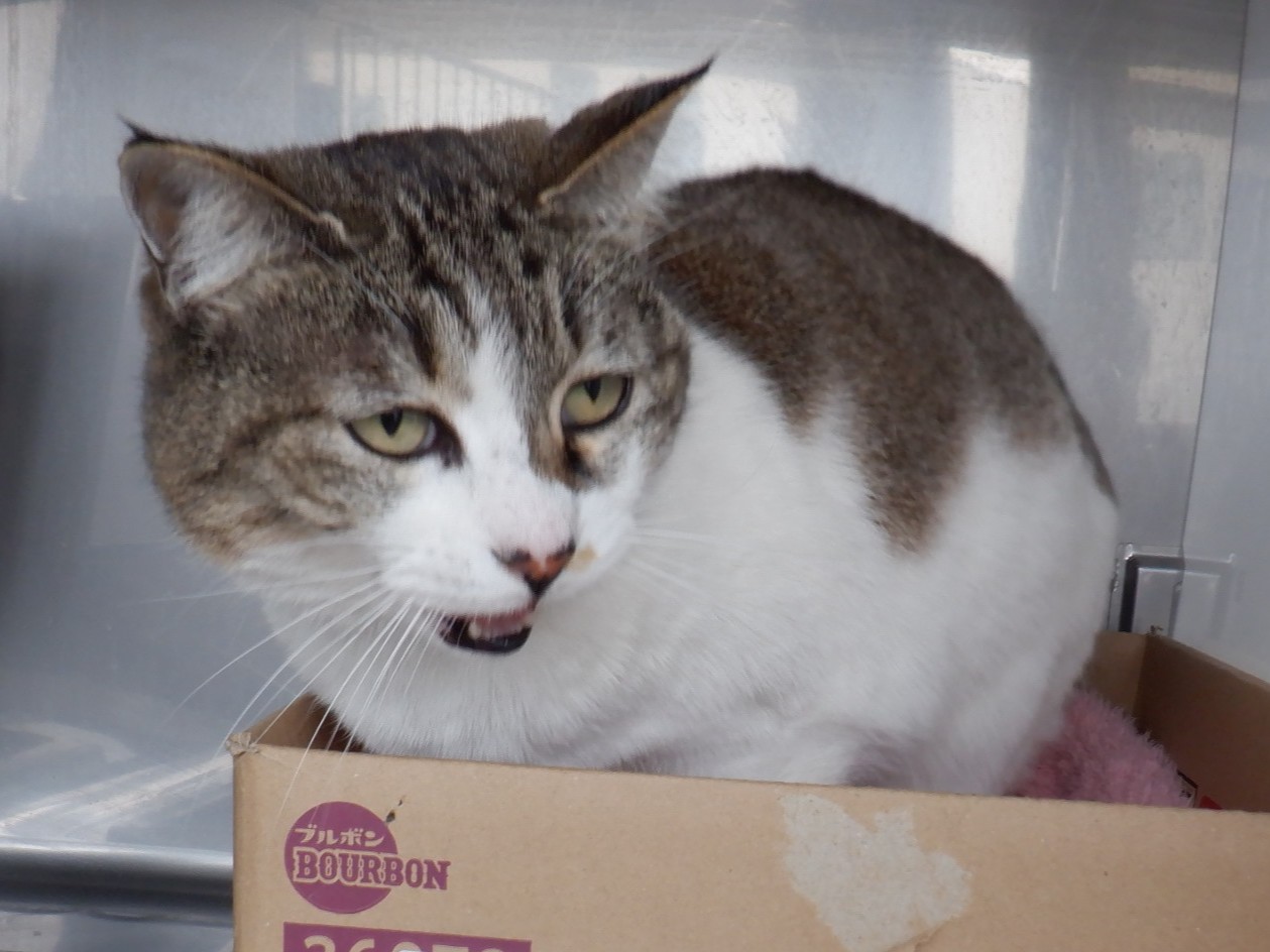 今日の診察室オープンスペースは密度が高いですが(お泊りしたジョンちゃん・シェリちゃん・ララちゃん・ミモちゃんに加え、今朝チェックインしたシロちゃん・マロンがいます)、今は落ち着いています。猫室はメイちゃんだけになりました。