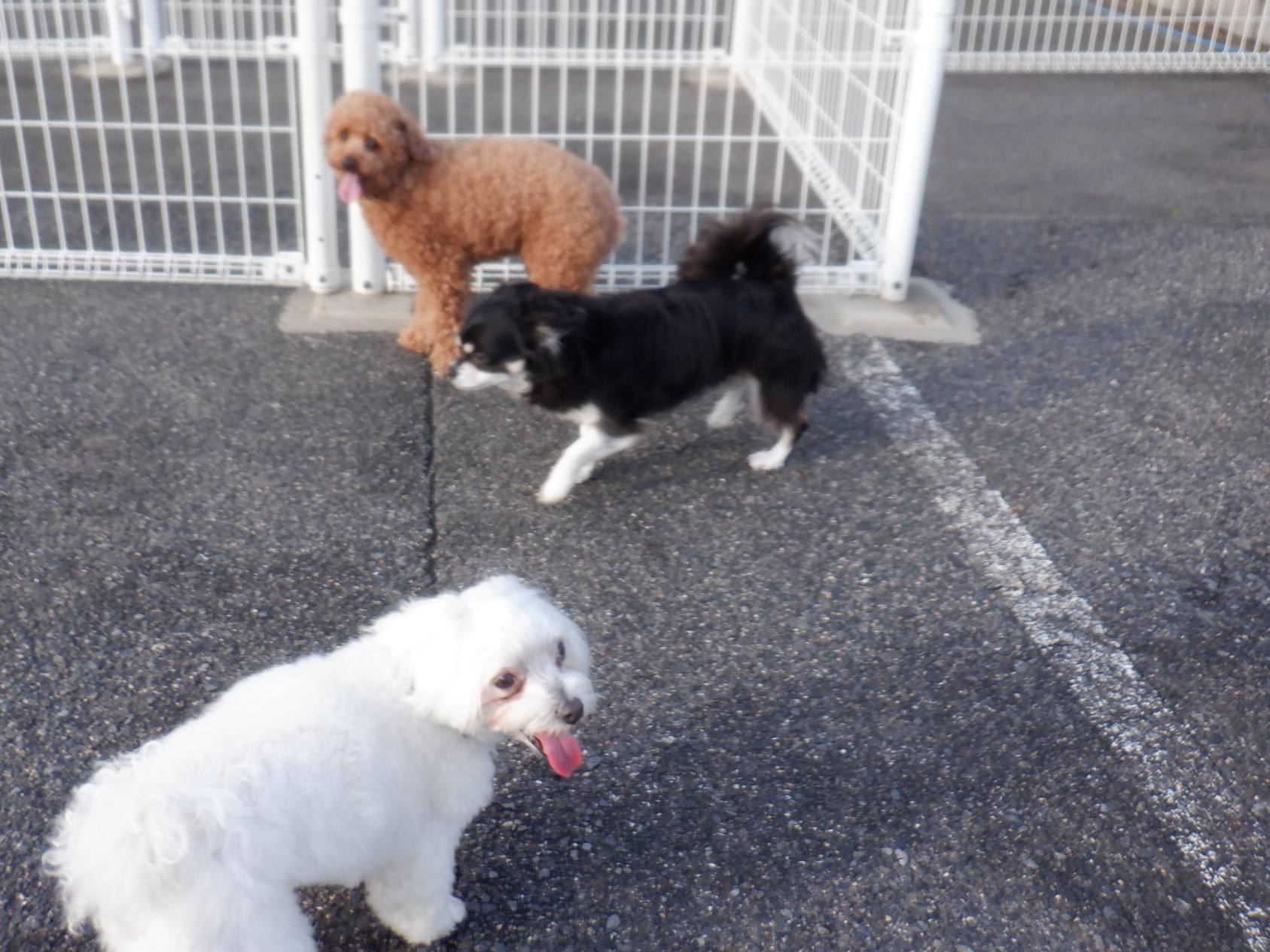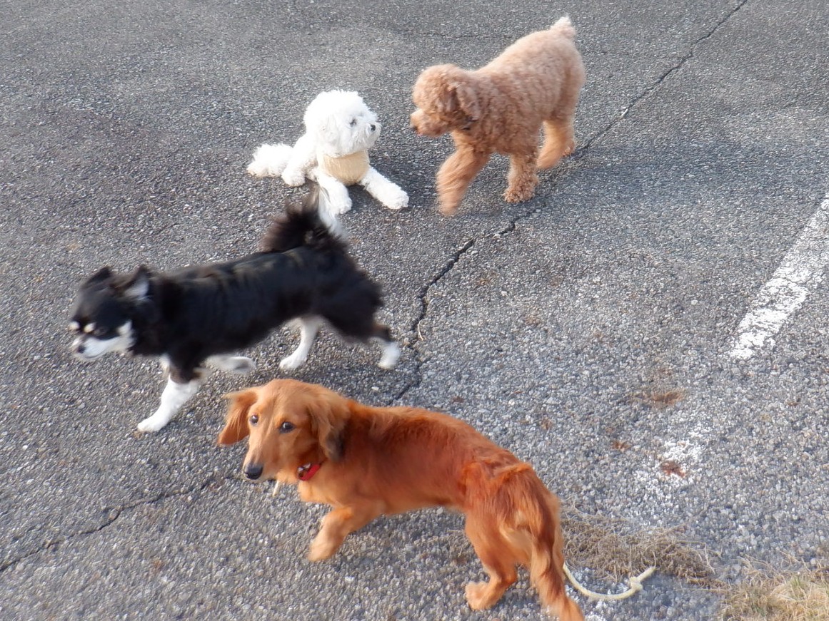 昨日午後から今朝、ココちゃん・マイトちゃん・マナカちゃん・ヒナタちゃんがやってきました。ココちゃんとハンナちゃんは交替で散歩に行きました。大きいワンちゃんが散歩している間、マイトちゃん・マナカちゃん・ヒナタちゃん・ララちゃん・ライチちゃん・ブランちゃん・ラスティちゃんはドッグランで遊びました。