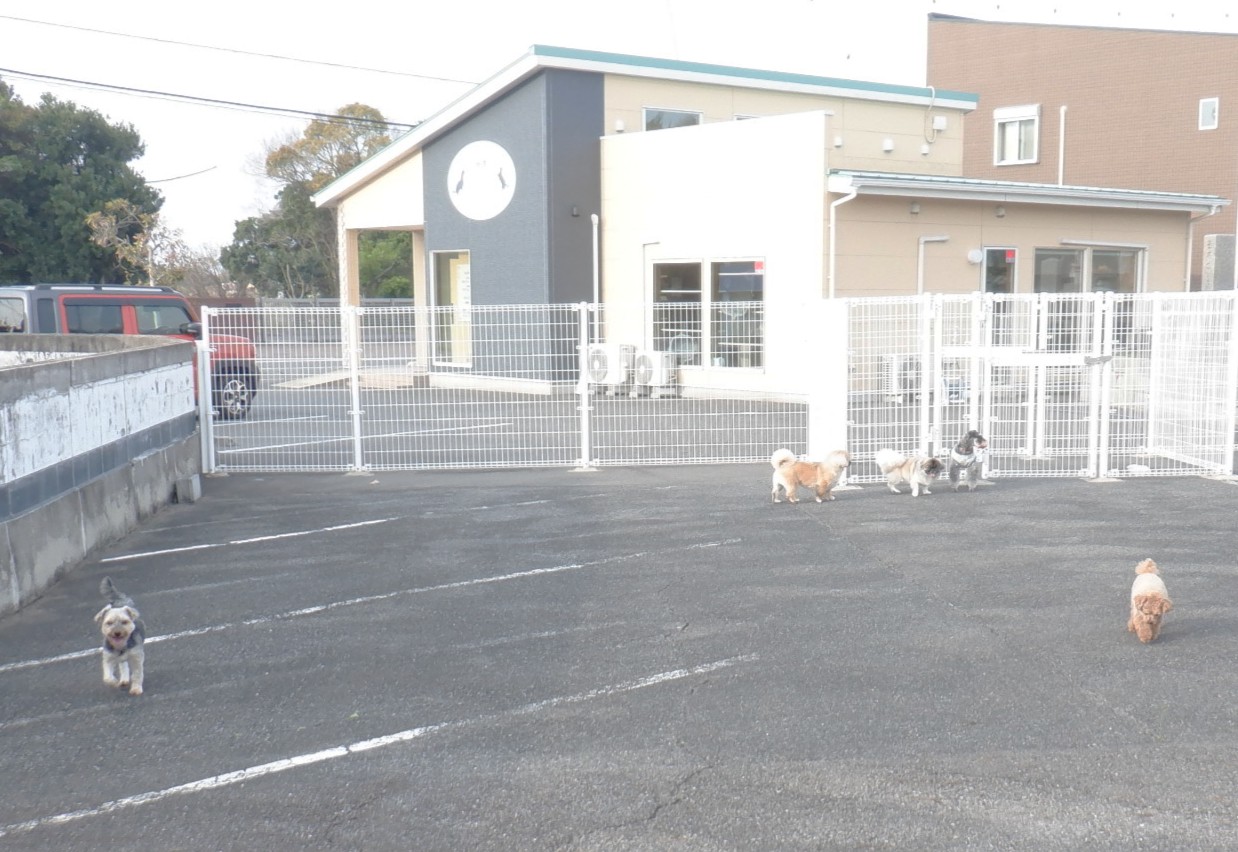 お泊りしたワンちゃんたちは全員(モフちゃん・ウーロンちゃん・レオンちゃん・アリスちゃん・ルカちゃん・フクちゃん・ライムちゃん)一緒にドッグランを楽しみました(この後は朝ゴハンです)。ワンちゃんが外にいる間、ミルクちゃんは施設全体を探検しました。カンちゃんは遊べるようになりました。